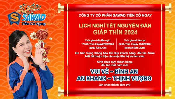 SAWAD thông báo lịch nghỉ Tết Nguyên đán 2024