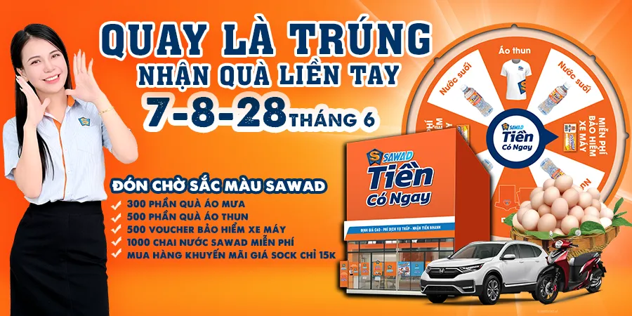 THÁNG 6 NGẬP NIỀM VUI Trong 3 ngày 7,8,28/6/2024 SAWAD TIỀN CÓ NGAY gửi lời cảm ơn và tri ân sâu sắc đến quý khách hàng đã sử dụng dịch […]